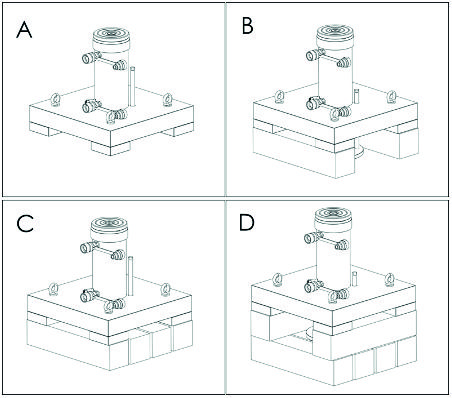 Estos equipos están especialmente pensados para trabajar junto con bloques de calce (cribbing), permitiendo realizar elevaciones incrementales de forma segura. El proceso se basa en la extensión y retracción controlada del cilindro, alternando la colocación de bloques interiores y exteriores hasta alcanzar la altura deseada, siempre garantizando una base estable.