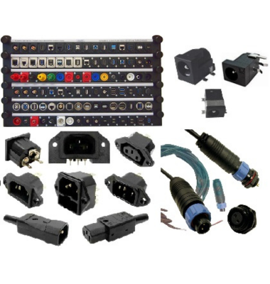 - Conectores XLR, audio y vídeo, conectores miniatura de 2 mm, DIN, bananas de 2 y 4 mm, pinzas tipo cocodrilo, etc.